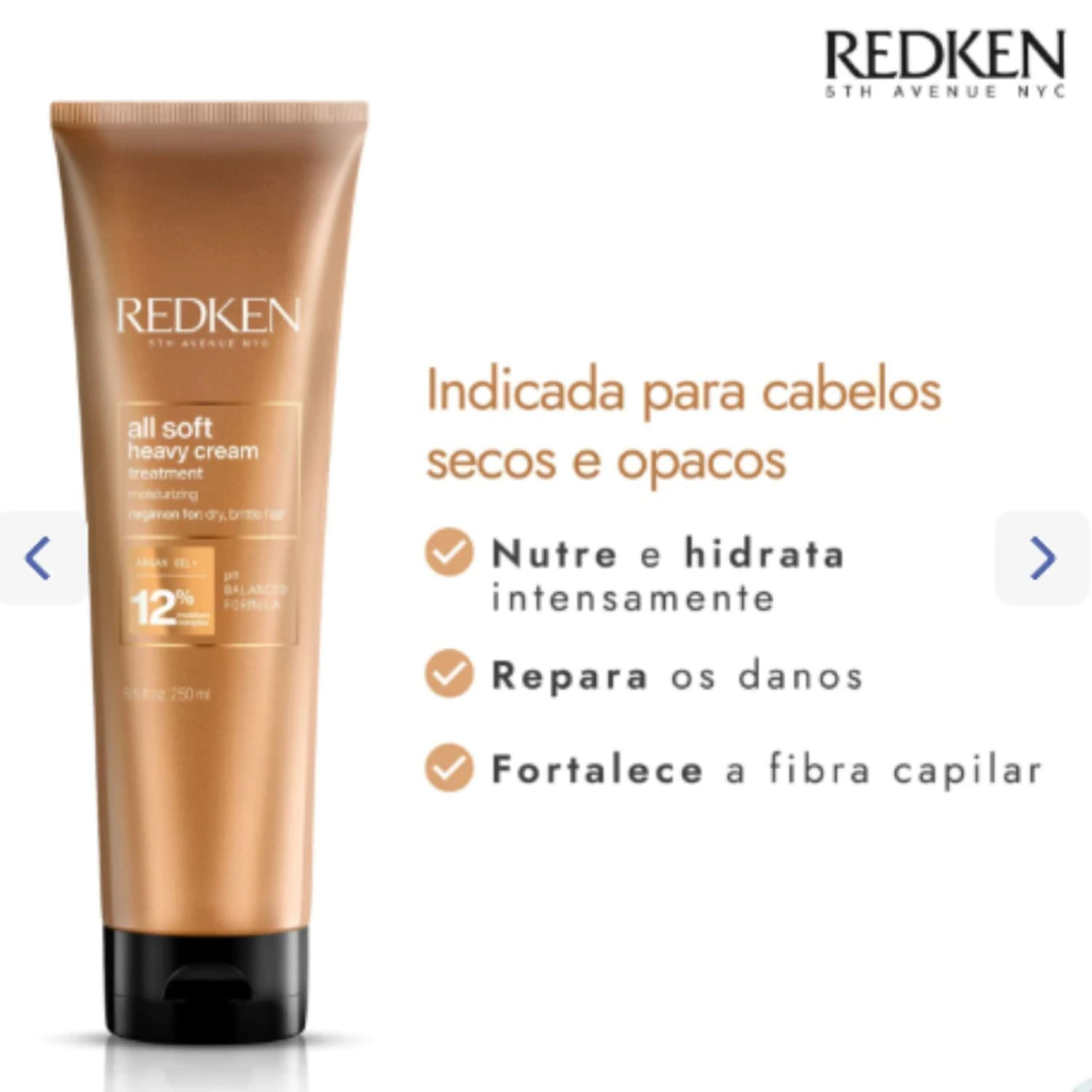 Máscara de hidratação profunda para cabelos secos e opacos. Redken All Soft Heavy Cream nutre e hidrata intensamente os fios. A Máscara Redken All Soft Heavy Cream ajuda a reparar os danos e fortalece a fibra capilar, deixando os fios resistentes, macios e mais disciplinados. A Máscara Redken All Soft está entre as melhores máscaras de hidratação, e seu poder é intensificado ainda mais se for combinada com os outros produtos da linha, como Shampoo e Condicionador Redken All Soft.